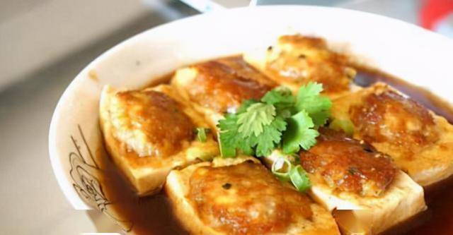 6.最关键的一步来啰?怎样翻面放入酿豆腐?要小心轻放,有肉的一面朝下
