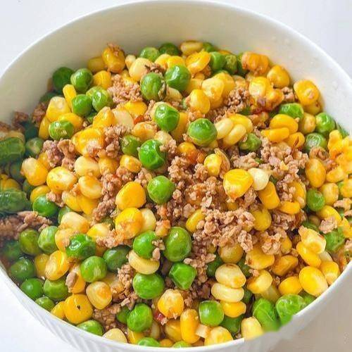 三、豌豆玉米炒鸡丁