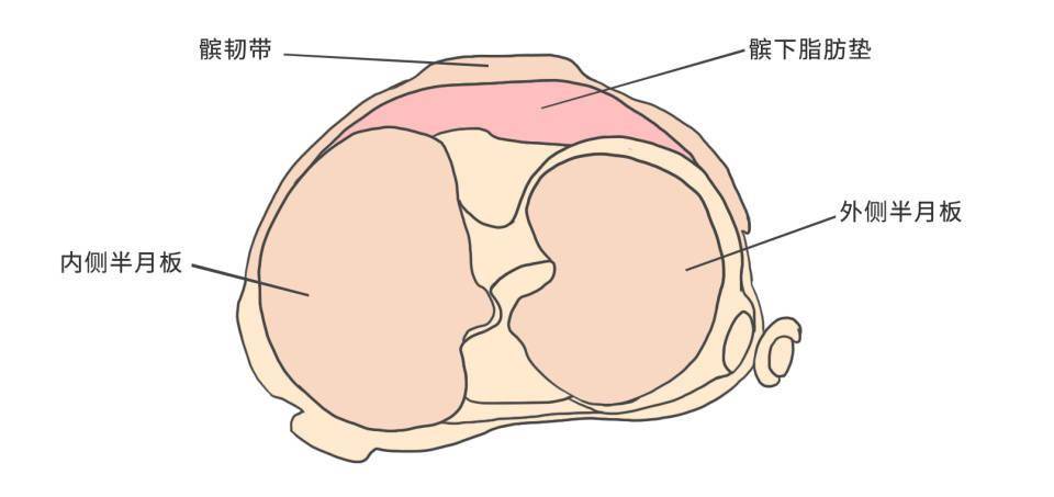 膝关节中,大腿骨(股骨)和小腿骨(胫骨)之间,有一对C形的纤维软骨结构,分别称为内侧半月板和外侧半月板。