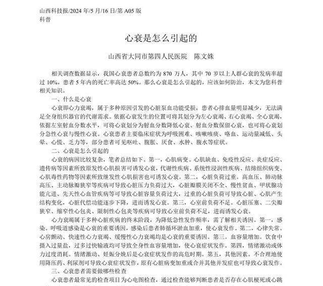 [1]陈文姝.心衰是怎么引起的[N].山西科技报,2024-05-16(A05).