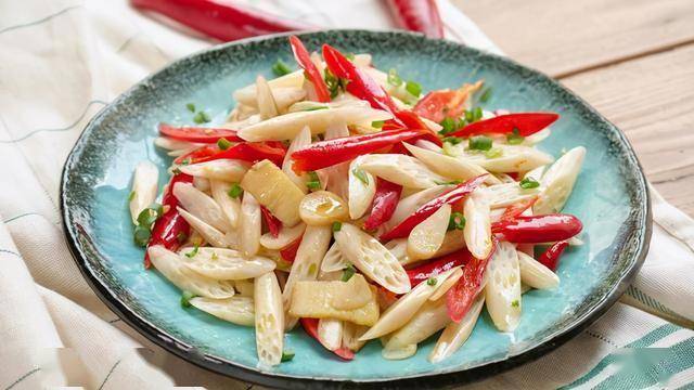 下藕带翻炒,加白米醋和盐,炒1~2分钟