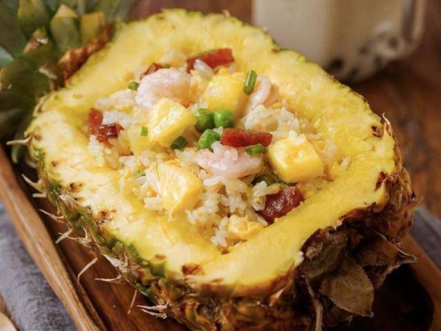 做法:1、 将菠萝从三分之二处纵切开,挖出果肉,做成菠萝碗
