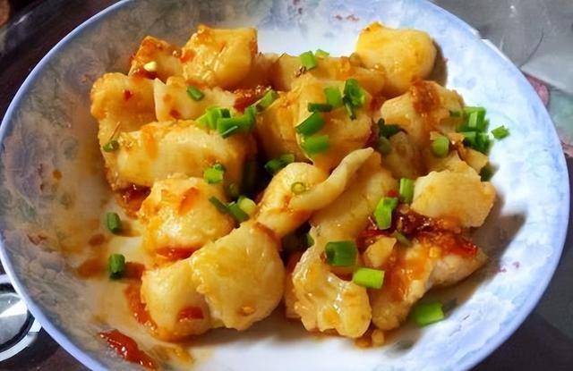 3、平底锅 放入适量油,放入蒜末爆香 放入一大勺蒜蓉辣椒酱 ,放一点蚝油 搅匀 关火;放入鱼块搅拌一下,让每块鱼上都沾上酱汁就可以了,撒葱花出锅
