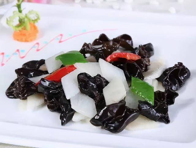 / 步骤 /1、山药去皮切薄片、青红椒洗净、黑木耳泡发;