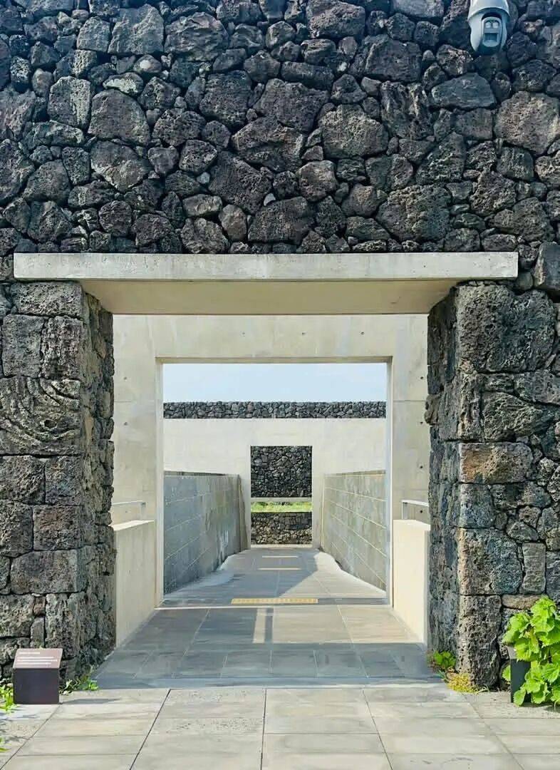 设计灵感:源自韩国传统韩屋和草家建筑,运用当地玄武岩、木材等天然材料。
