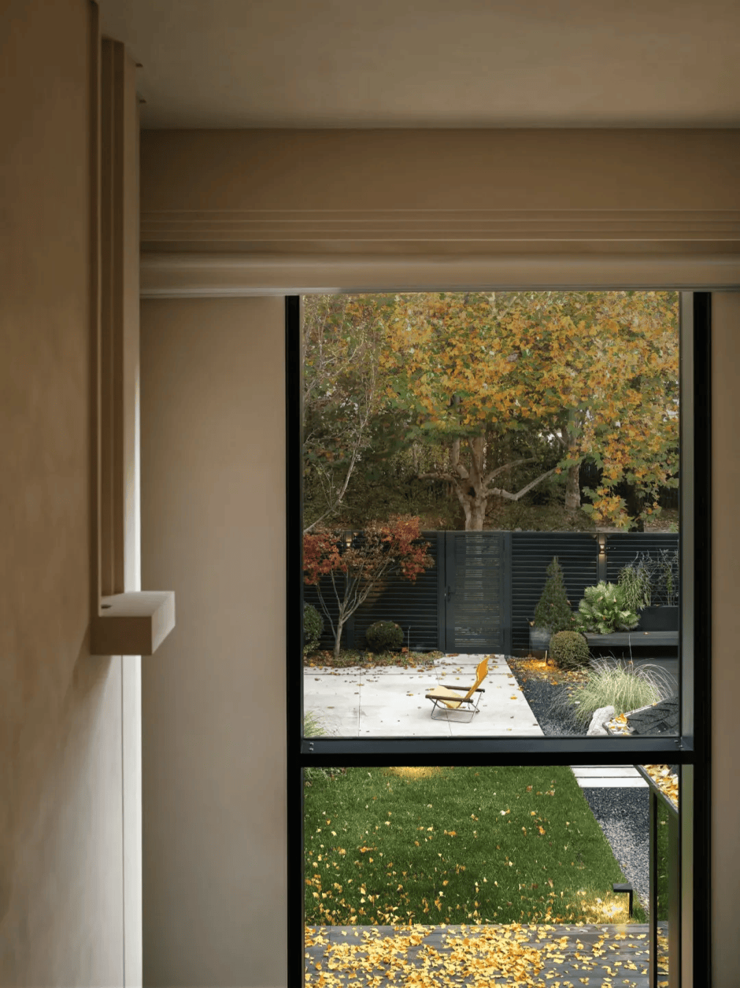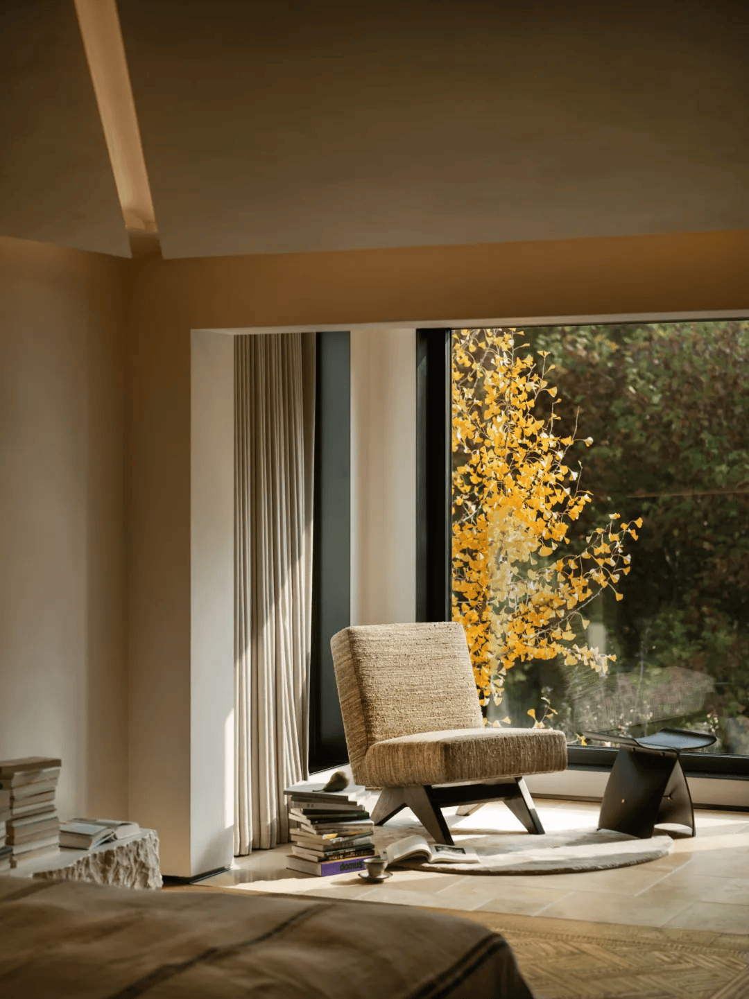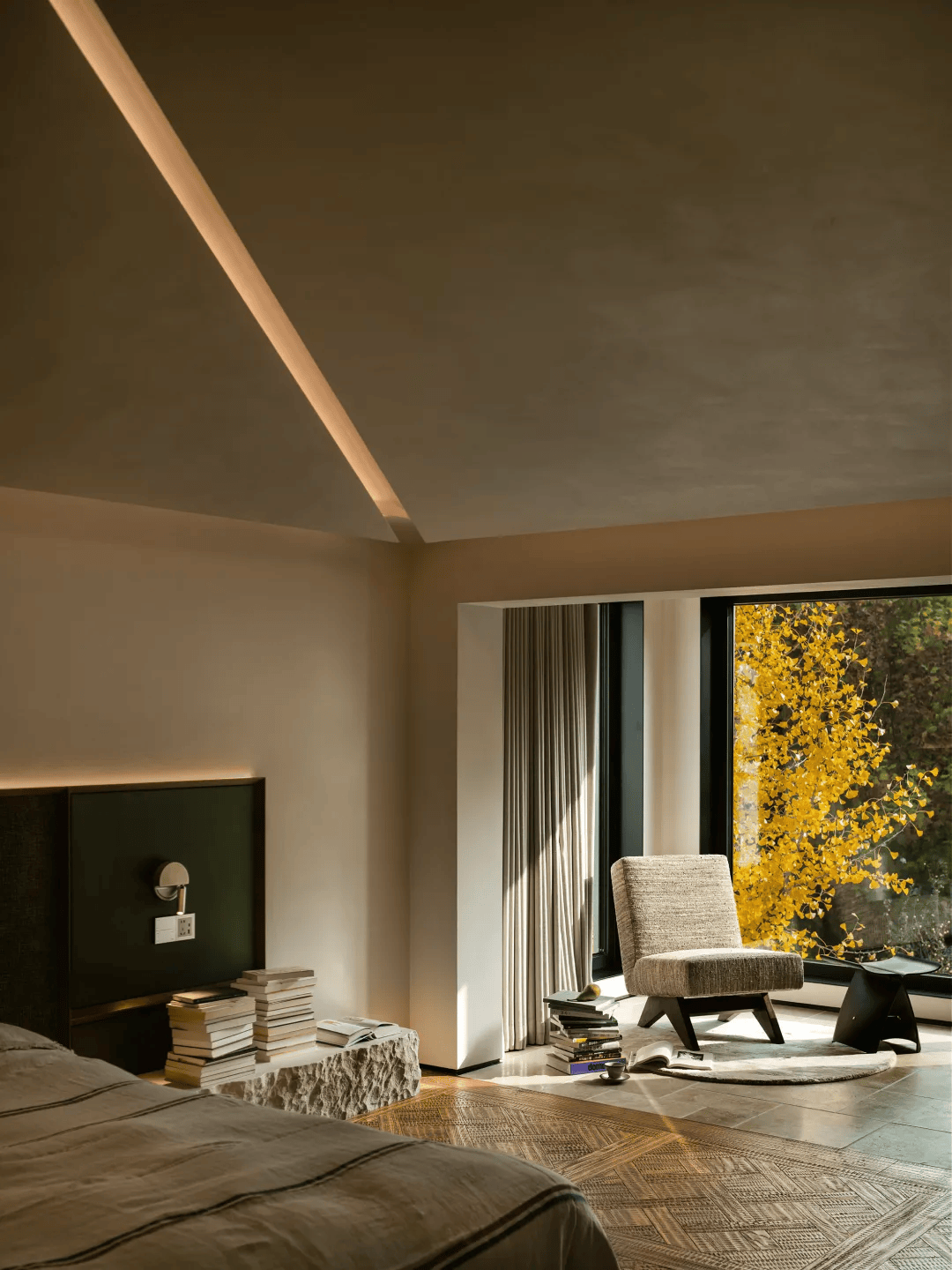 胡睿及其团队在长岛澜桥项目中,以院子作为整个空间构想的起点,将建筑、室内与庭院视为一个不可分割的整体。在这个项目中,院子不仅是自然的延伸,更是空间与日常互动的媒介。银杏树的生长、叶子的飘落、光线的变化,这些自然元素被巧妙地引入室内,使四季成为生活的一部分。这种设计理念打破了传统室内外空间的界限,让自然与空间共生共荣。