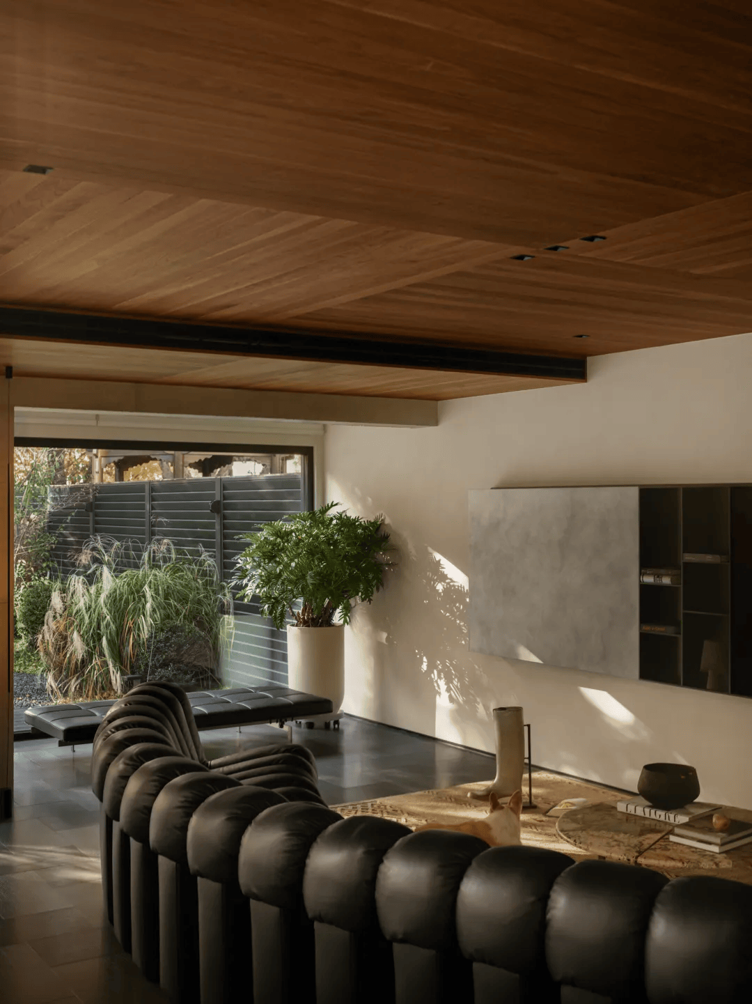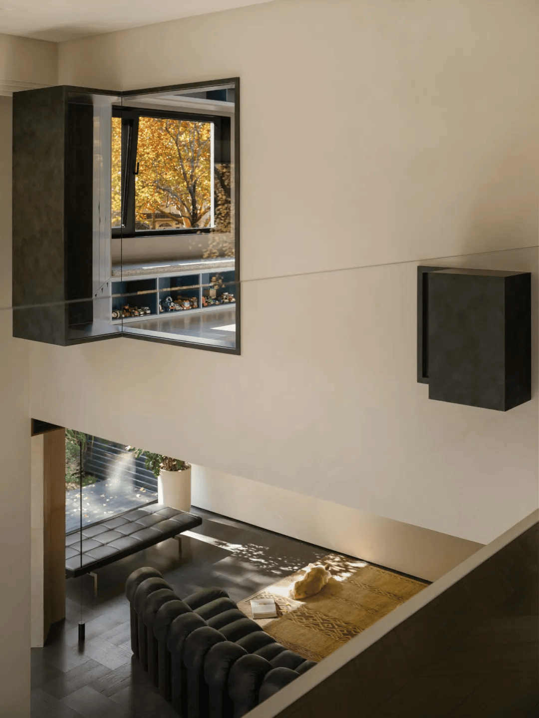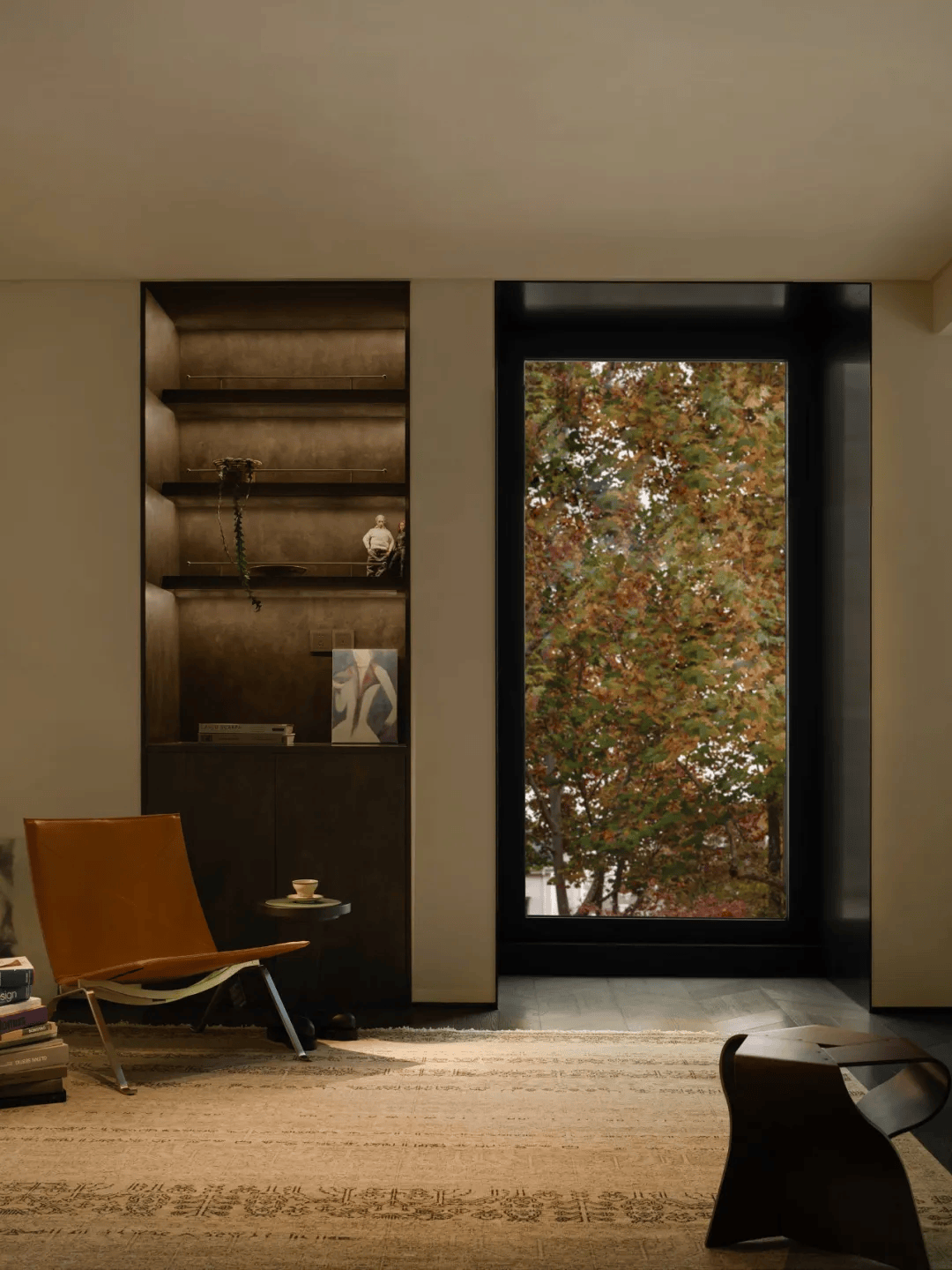 胡睿及其团队在长岛澜桥项目中,以院子作为整个空间构想的起点,将建筑、室内与庭院视为一个不可分割的整体。在这个项目中,院子不仅是自然的延伸,更是空间与日常互动的媒介。银杏树的生长、叶子的飘落、光线的变化,这些自然元素被巧妙地引入室内,使四季成为生活的一部分。这种设计理念打破了传统室内外空间的界限,让自然与空间共生共荣。