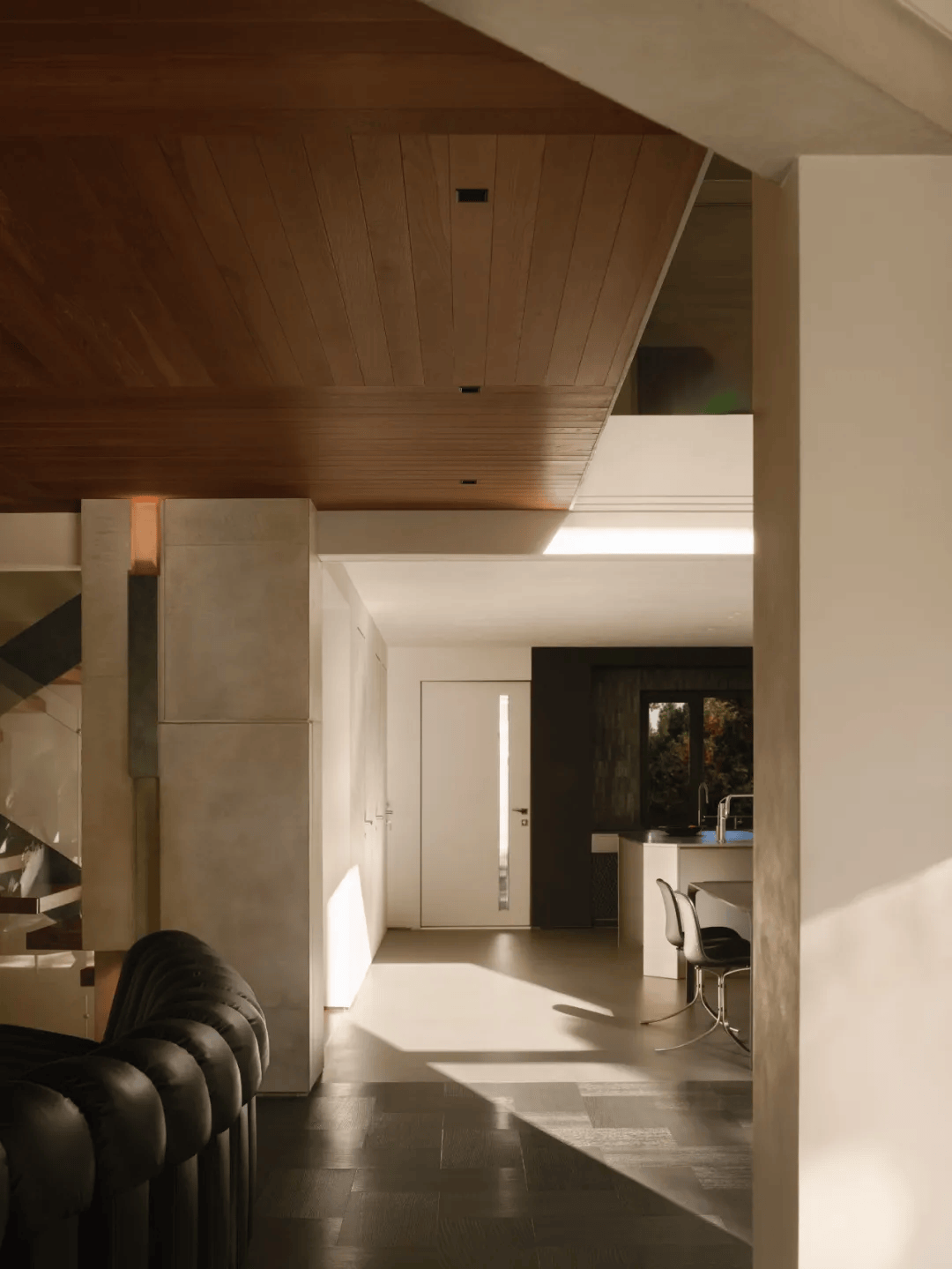 3. 采光与布局:针对原有传统美式风格在采光与布局上的局限,设计团队从结构本身入手,重新组织空间秩序。通过优化布局与采光设计,使空间更加开放、通透,真正参与空间组织。