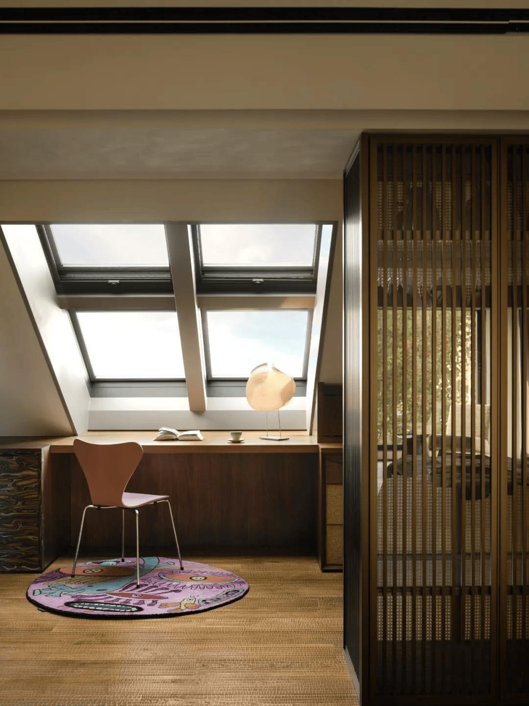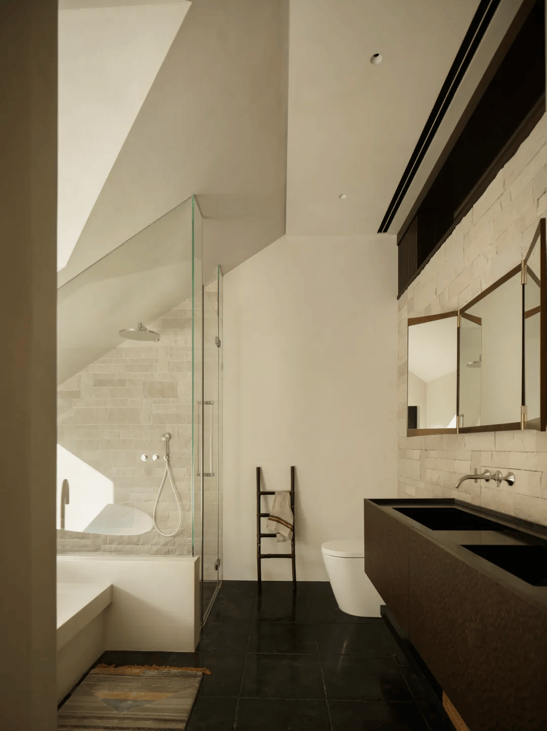 3. 卫浴系统:浴室选用Antonio Lupi的卫浴系统,以简化的形式与精确的细节处理,回应日常使用中对秩序与触感的基本需求;镜面选用GUBI的Vanity系列,折叠的形式与镜面比例细节被控制在恰当的尺度之内。这些细节处理既体现了对使用体验的关注,又展现了对空间品质的把控。