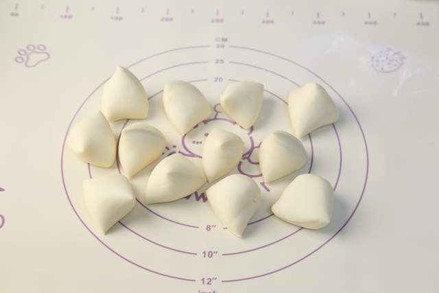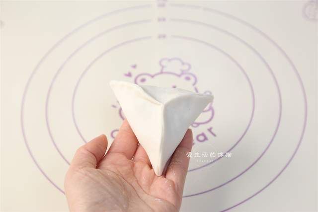 捏成3角形后,再拢起来把尖尖捏紧,先室温发酵10分钟。