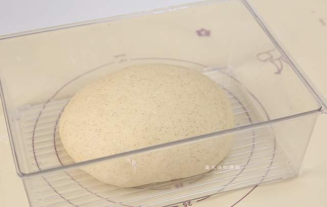 滚圆后放入盒子里,放到温暖处发酵至2倍大小,天气冷的时候用温水辅助发酵,现在是春夏天,可以室温发酵。