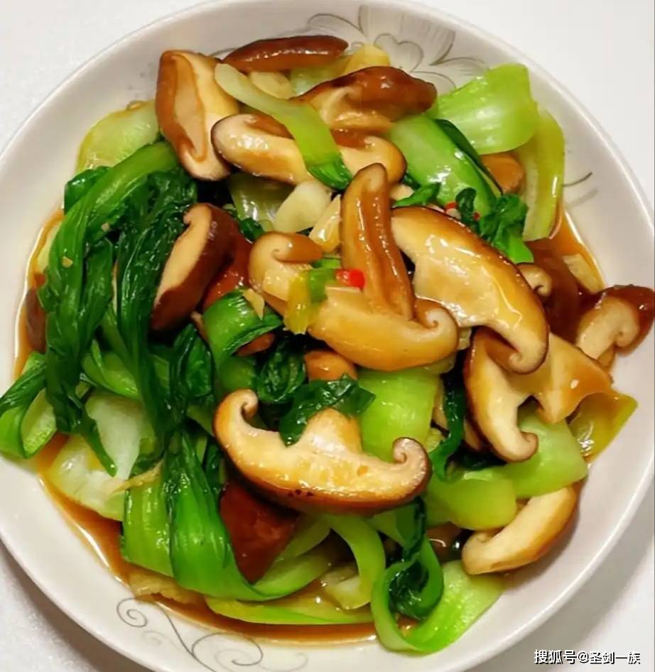 香菇味道鲜美,油菜富含维生素和矿物质。