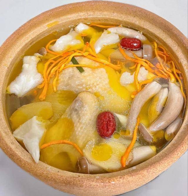 5、炖至鸡肉软烂时,加入枸杞和适量盐,再继续小火炖5分钟,让调味和香气充分融入汤中。
