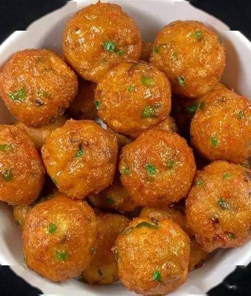 5. 锅中倒油烧至四成热,下入丸子,炸至八面金黄,捞出控油即可,香酥入味。