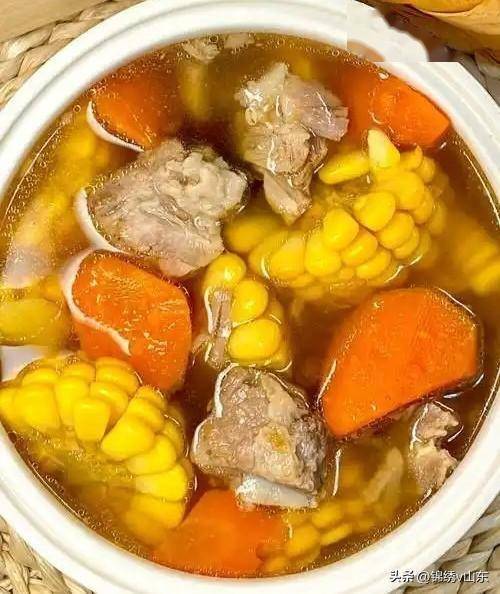 材料:排骨300克、玉米1根、胡萝卜1根、姜片、料酒、盐。