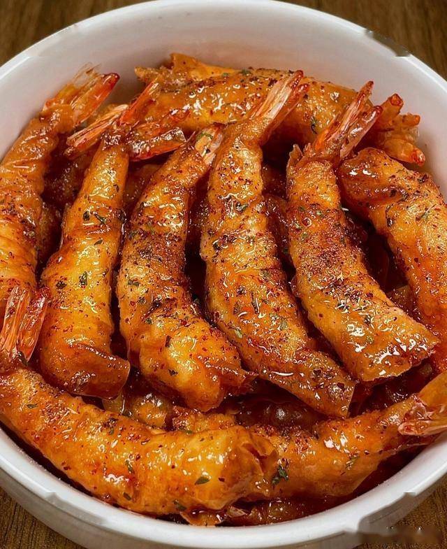 3. 把大虾放入面糊中均匀裹浆,锅中倒油烧至五成热,下入大虾,炸至金黄酥脆后捞出,外酥里嫩。