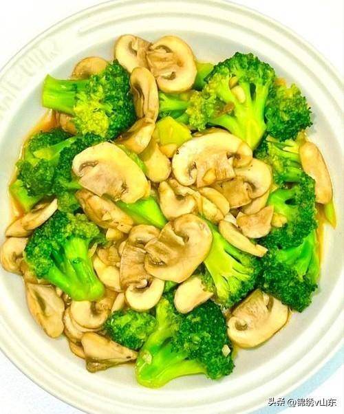 食材:西兰花、口蘑、蒜末、生抽、蚝油、盐