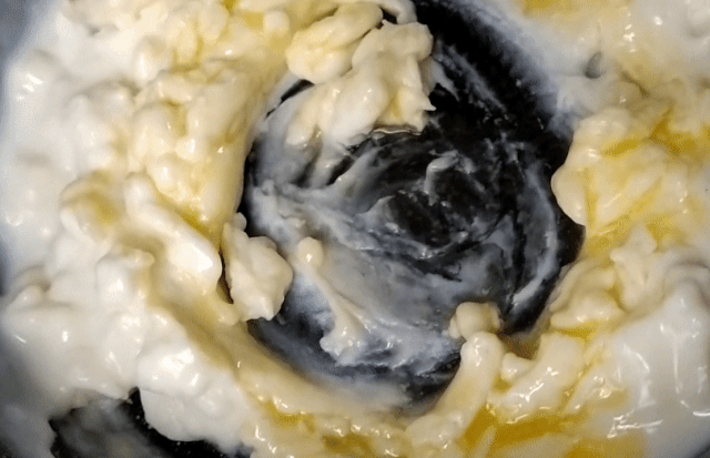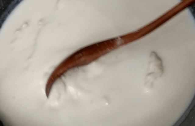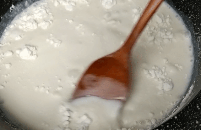 不要觉得麻烦,搅拌过程中会发现液体开始结块。