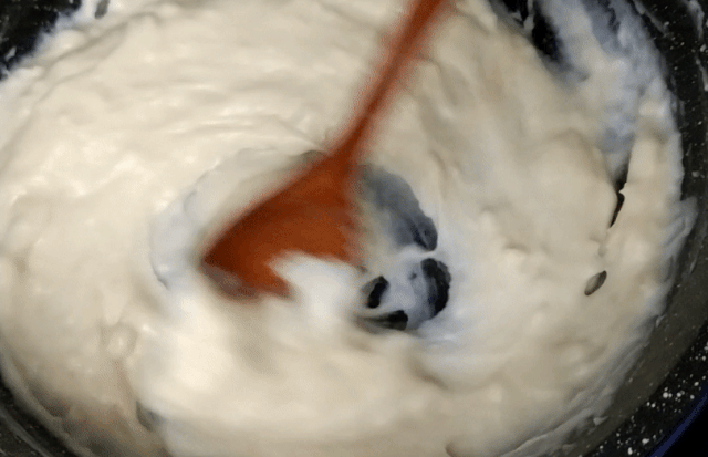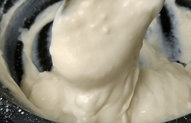 所有液体都成块,快速搅拌,面糊会变得顺滑。