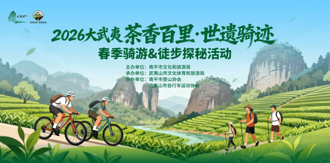 大武夷春季骑游&徒步活动(3月中下旬):沿27公里国家公园风景道骑行,串联遇林亭窑址、燕子窠茶园等世遗点,配套"茶香市集"品鉴大红袍、尝武夷熏鹅。