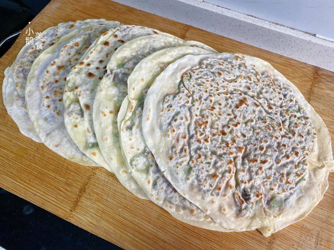 9,底部金黄后,翻面盖盖烙,两面都这样,中间鼓起,就熟透了。