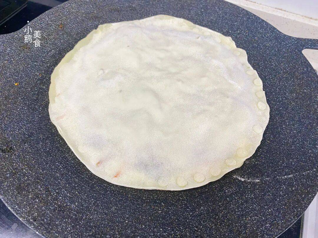 7,再挑一张饼,盖在上面。边缘用手指压一压,防止散开。