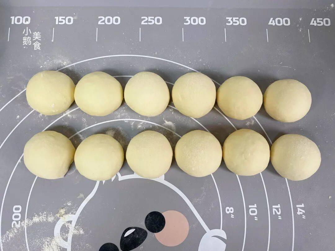 2,搓成长条,分成10个面剂子,分别揉圆。