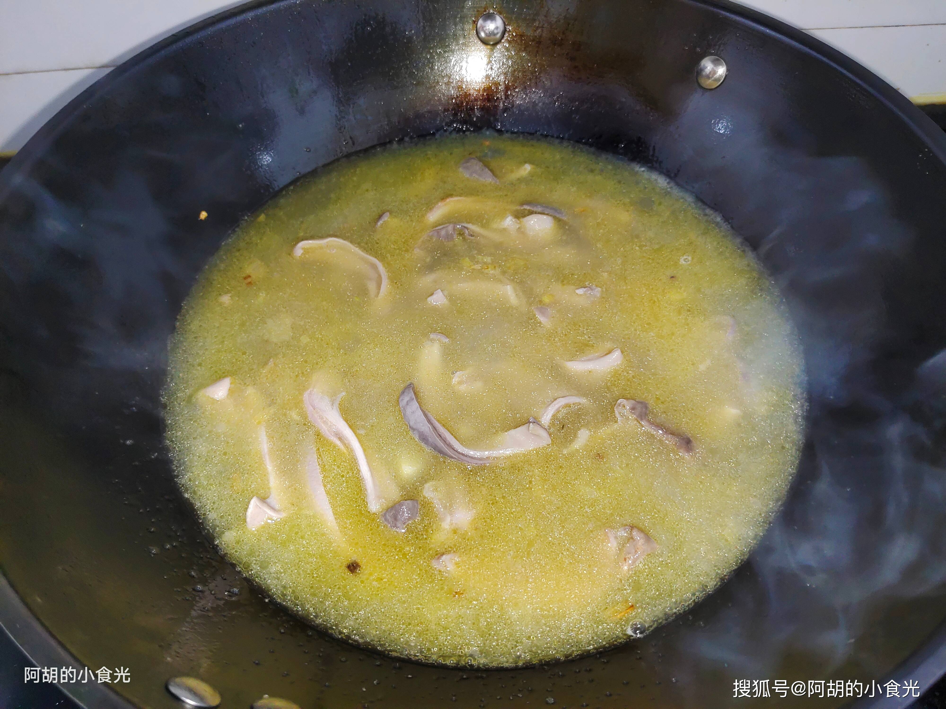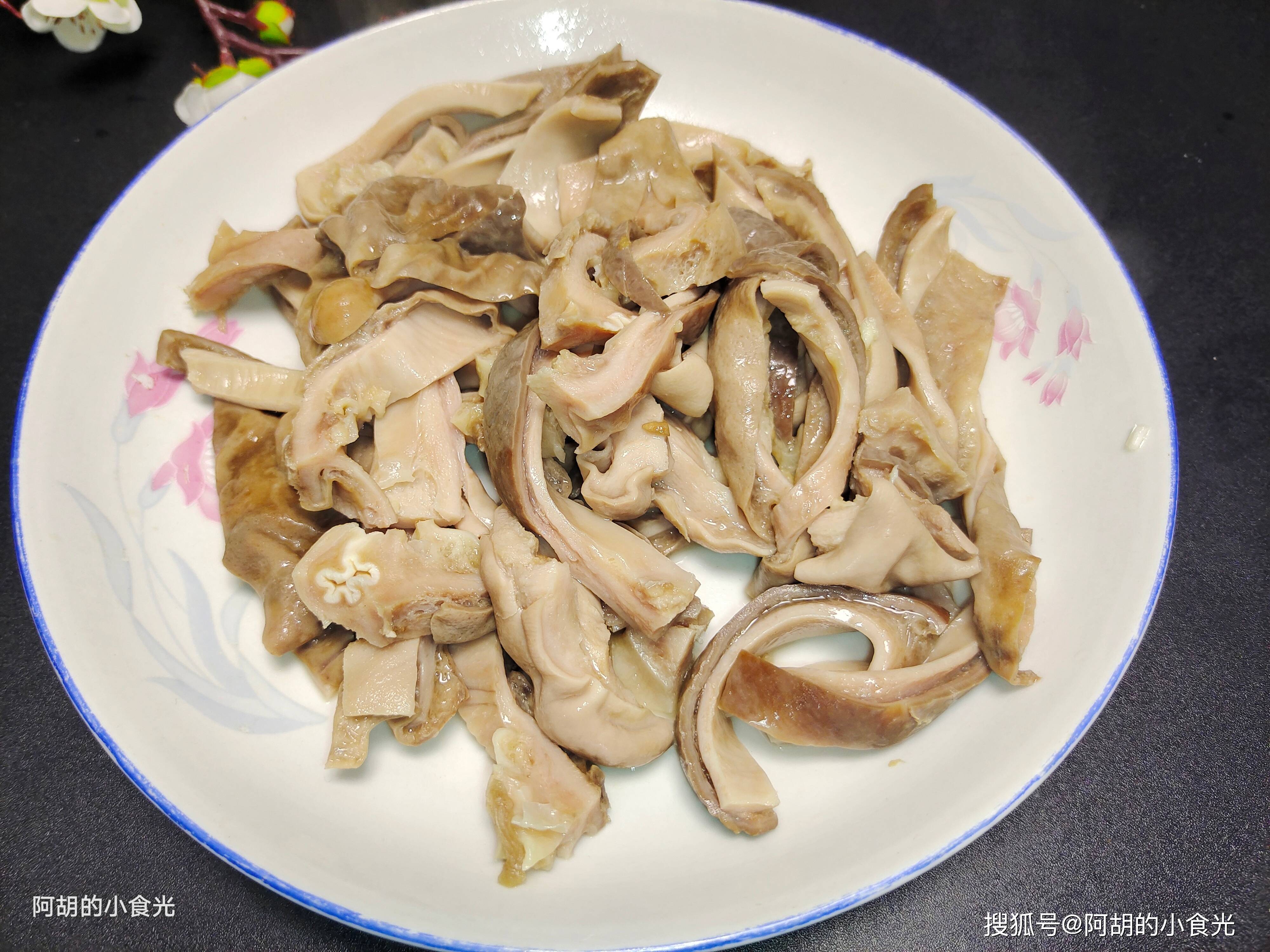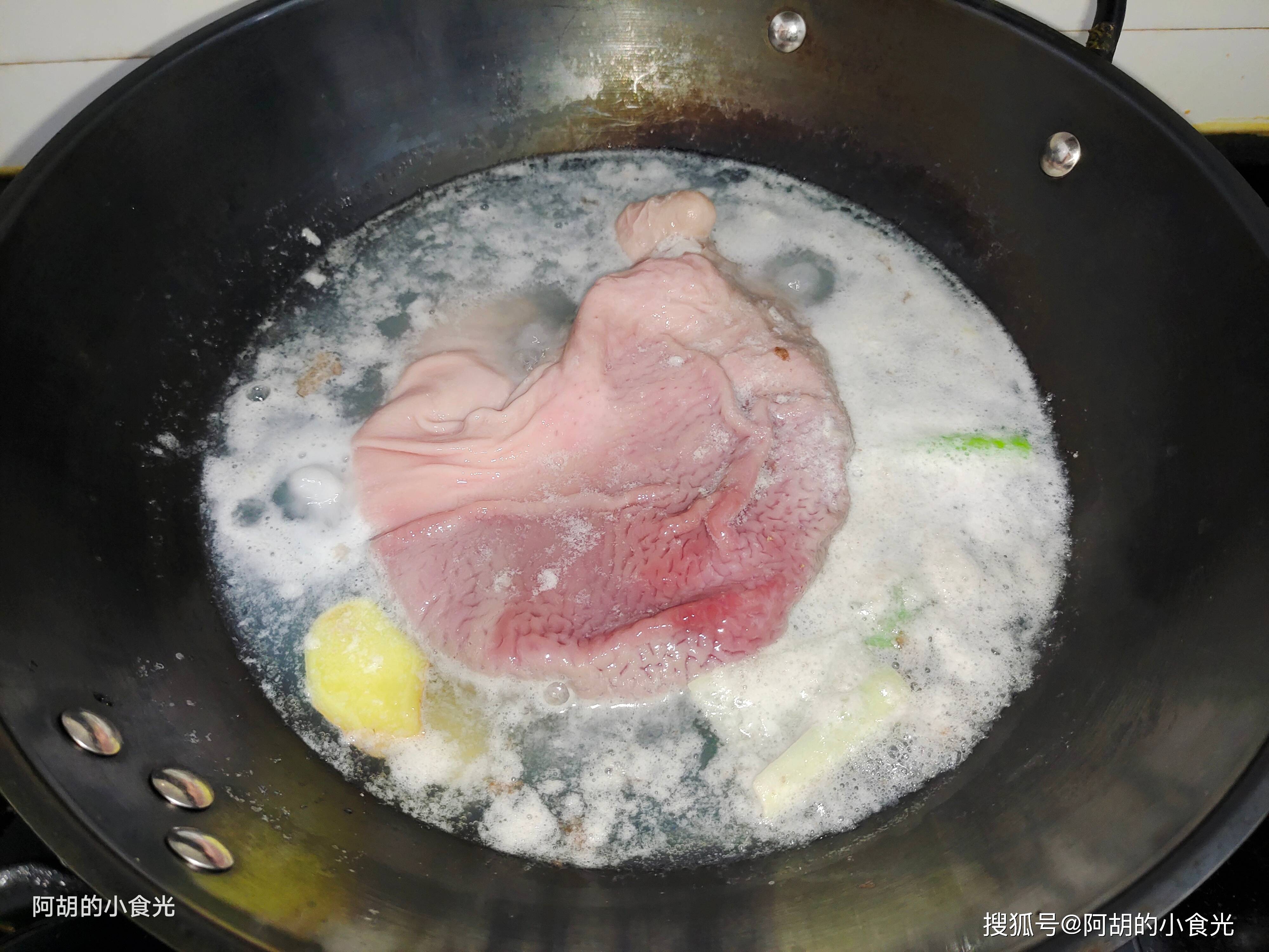 记住了,鲜猪肚一定要处理干净一些,黏液要用淀粉和食盐多多地搓洗,焯水后要把表面的一些脂肪颗粒也剪掉。