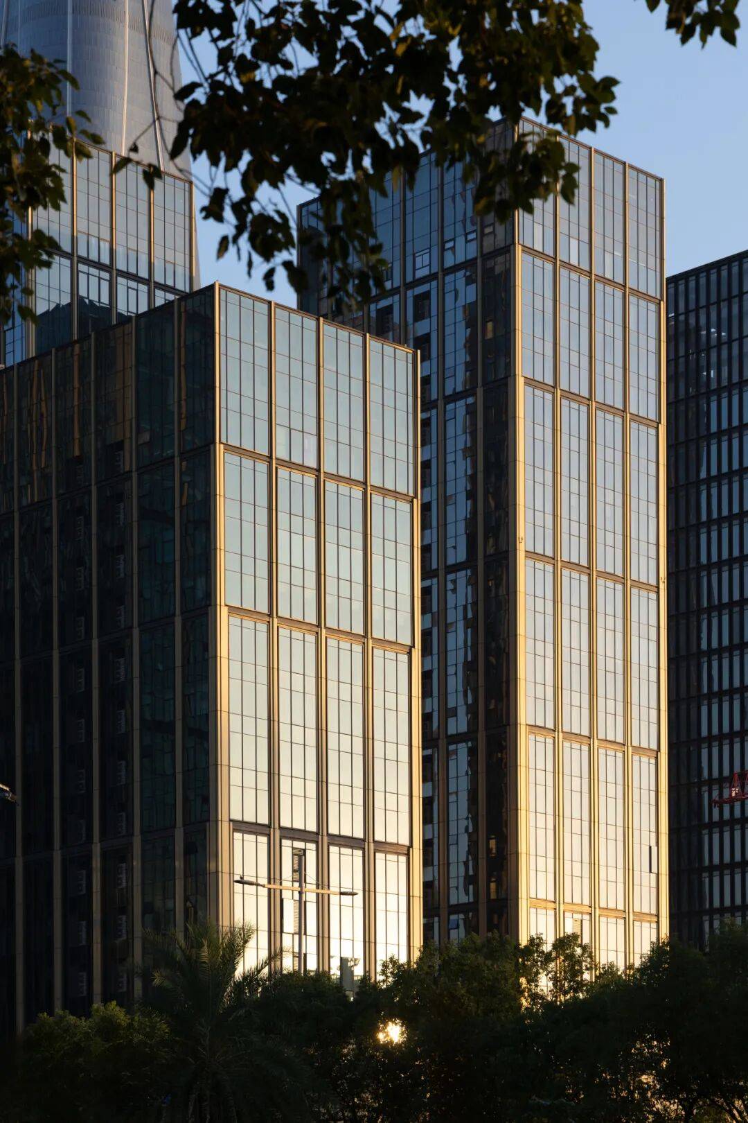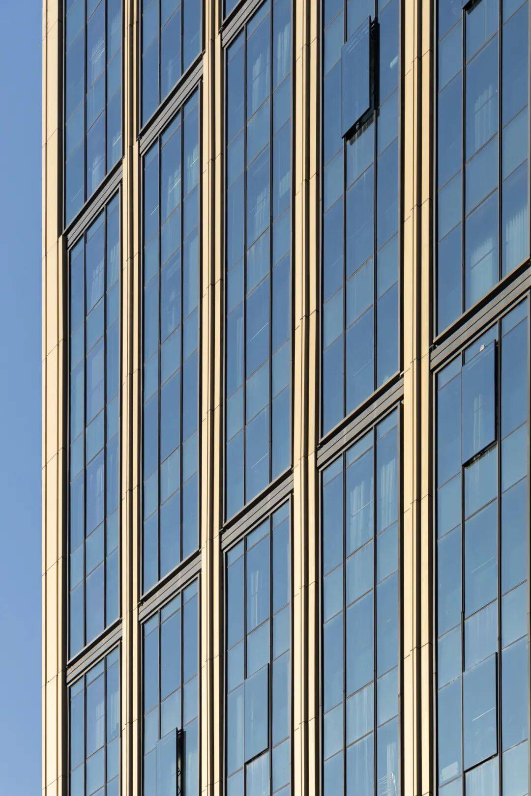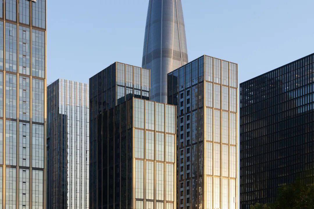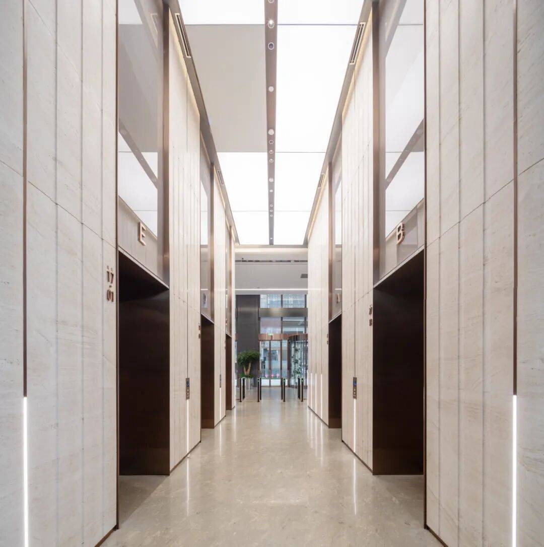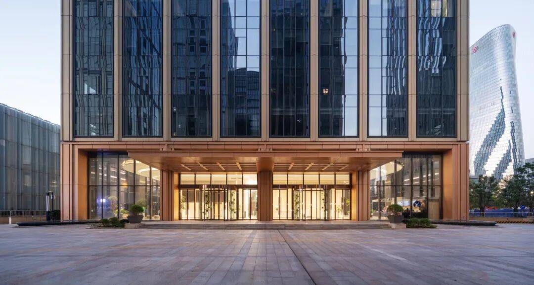 立面材质与工艺精益求精:塔楼以香槟金色铝板与蓝灰色玻璃为主要材料,体现“生长创新”理念;裙房采用高透大块玻璃,增强商业展示性;博物馆旗舰店结合玻璃与金属材质,传递“开放吸引”主题。