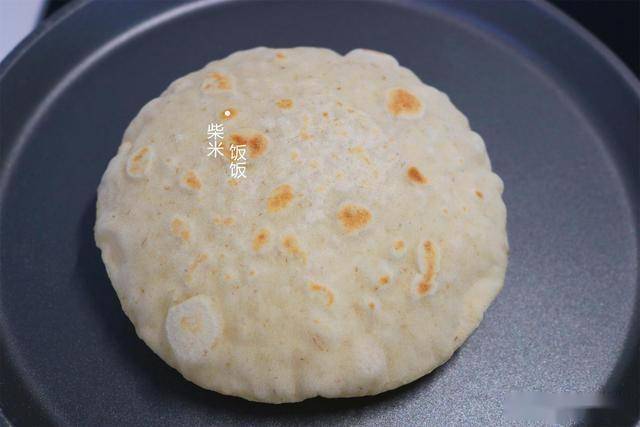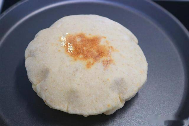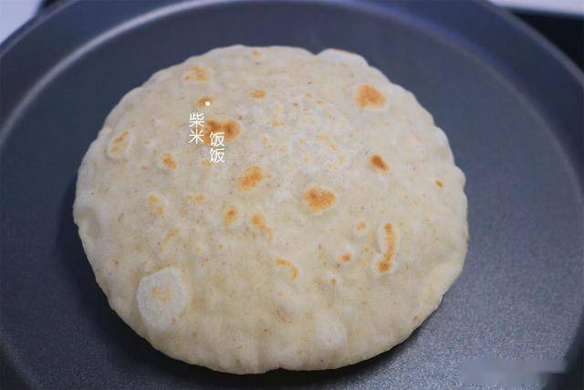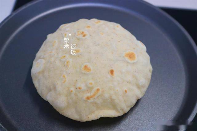 7,翻面后再烙20~30秒,然后再翻一次面。这时候饼就会慢慢鼓起来。