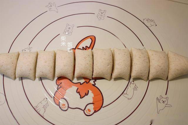 3,将面团移到揉面垫上揉光滑,搓成长条,再分成10个小剂子。