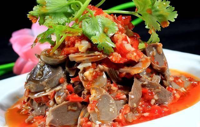 食材: 鸡胗,姜末,红剁椒,料酒,青椒,葱,蒜,老抽,盐,香油