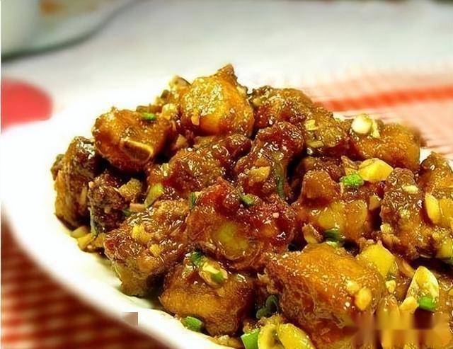 做法:1.取鳕鱼净肉切成丁,粘上生粉后再入油锅,滑熟了捞出;
