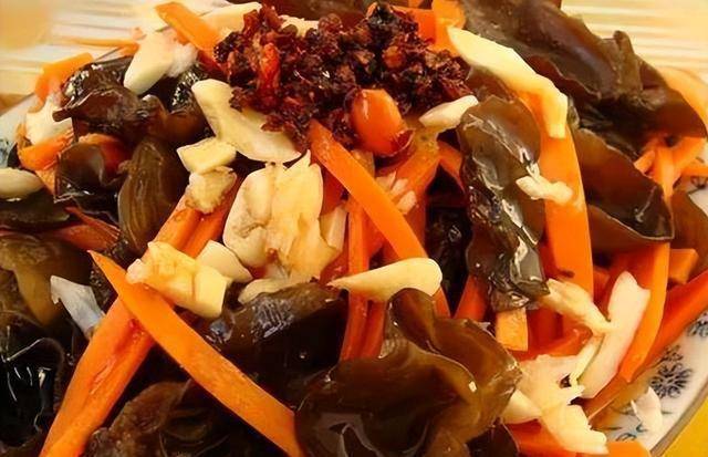 1.胡萝卜洗净去皮切丝黑木耳泡发洗净准备大蒜末锅内水烧开先倒入黑木耳再把胡萝卜丝倒.盖上大火烧开.之后捞起过冷水后沥干水分先把食材放入碗中,加入大蒜末