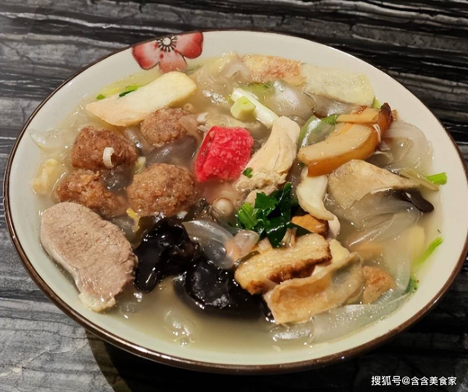 以鸡肉、猪肉、羊肉一同慢火熬煮出醇厚汤底,这是拼三鲜的灵魂所在。那浓郁的汤汁,汇聚了三种肉类的精华,每一滴都蕴含着丰富的味道。再加入水黄花、海带丝、韭黄、菠菜等配菜,荤素搭配,营养均衡。吃的时候,边吃边喝汤,鲜醇的汤汁顺着喉咙滑下,仿佛一股暖流涌入心底,让人倍感温暖。若是搭配一个白馍或是一碗米饭,吸饱了汤汁的它们,滋味更是绝绝子,让人忍不住一口接一口。