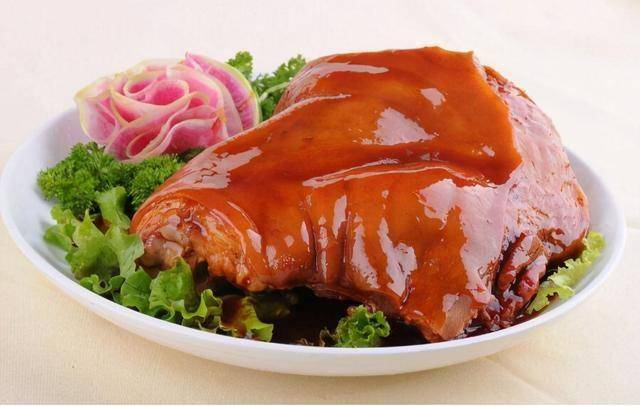5.倒入料汁,开水,放入肘子,撇去浮沫,大火烧开,小火慢炖,直到肘子软烂为止