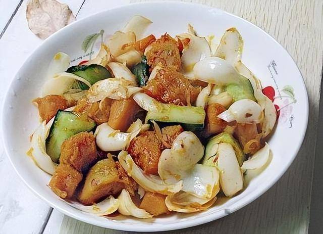 3. 放入百合、黄瓜进行翻炒,最后放入盐、鸡粉、糖调味,翻炒至熟即可。