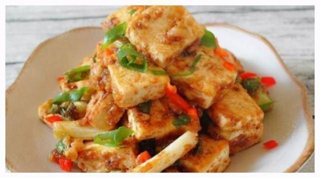 7、最后放入豆腐,淋少许酱油、盐、糖、湿淀粉,放黄瓜和虾仁继续翻炒,最后淋香油即可出锅。