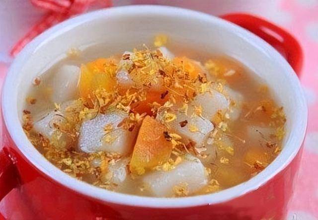 3.按个人口味再放少许糖调味,最后出锅前撒上干桂花即可。