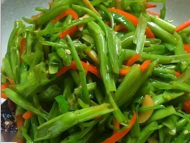 材料:通菜500g、二荆条2个、红椒3个、蒜瓣儿4颗、姜4片、干灯笼椒1颗、油适量、盐适量、生抽适量、鸡精适量。