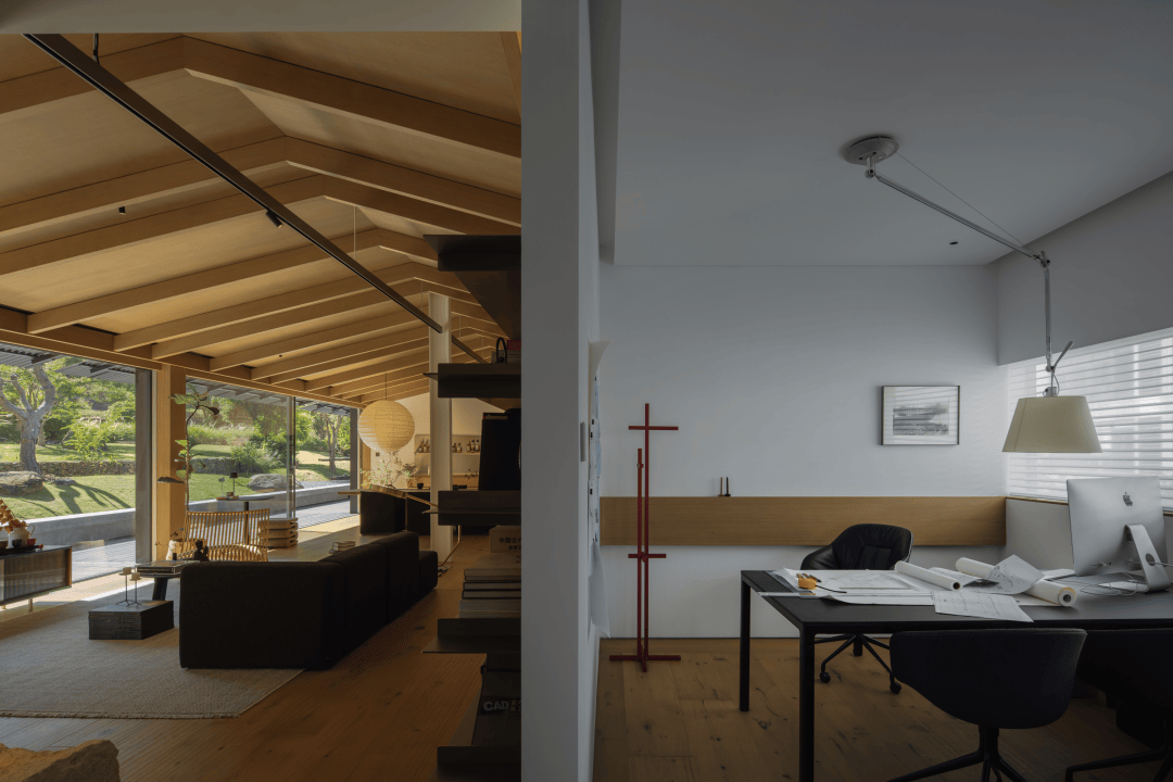 弗兰克·劳埃德·赖特曾言:“我的建筑跟随着大自然的原则,就像她已经在这里表现的那样。”对自然的向往深植于东方人血脉,在规整与效率主导的当下愈发迫切。大成设计办公室便是一处逃离格式化楼宇,与自然深度融合的建筑典范,它褪去建筑作为自然对峙者的外衣,成为山林的延伸与生活美学的具象呈现。
