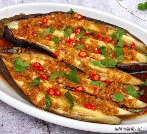 详细做法:1、先把茄子洗干净,不用去皮,带皮蒸出来颜色好看,口感也更有韧劲。然后把茄子切成厚片,放锅里蒸熟。