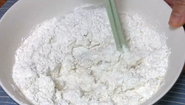 2,再慢慢加开水,用筷子搅拌,使水和糯米粉混合。