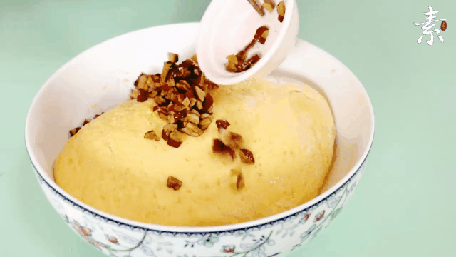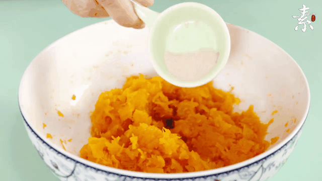 1,南瓜去皮去籽切块,隔水蒸熟; 加少许白糖趁热碾成泥,不烫手时与酵母粉一同揉入面粉; 慢慢加入适量清水,拌成絮状后揉成光滑面团;