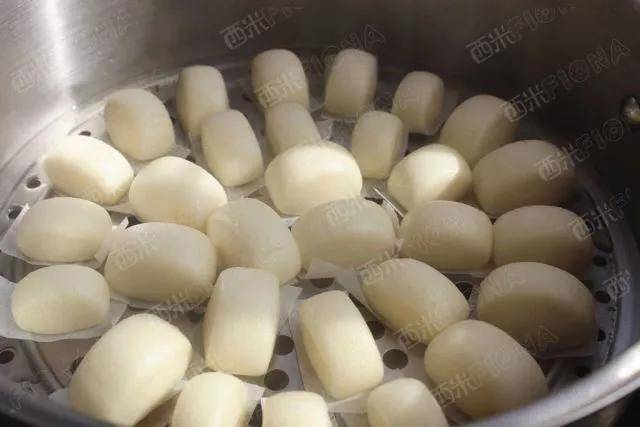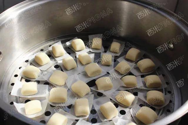 6,盖锅盖,用温水继续发酵到比原来大一点,大约15分钟左右。开火上汽后蒸6分钟即可。