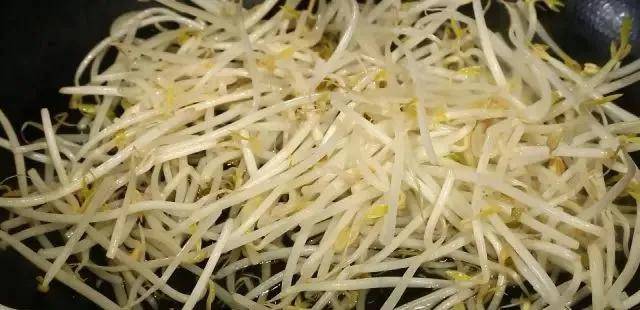 6,另起一口锅,烧开水后加入少许盐,加入豆芽,豆芽在锅中焯3秒即可出锅。