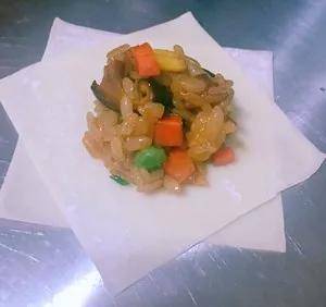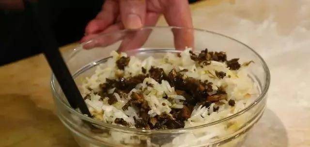 1、把白菜切末用盐腌拧干水,把香菇、胡萝卜、沙葛切丁,然后用煎锅翻炒,放盐、素蚝油、胡椒粉、芝麻油调味。