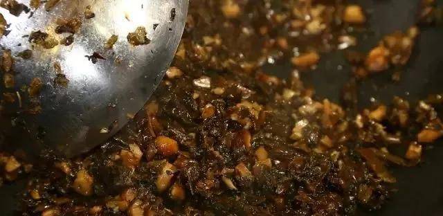 5,加入少量清水再烧制5分钟,一锅香喷喷的冬菜香菇酱就做好了(大厨提示:平时在家可以一次多做一点这个酱料,放在冰箱里随用随取,方便省事)。