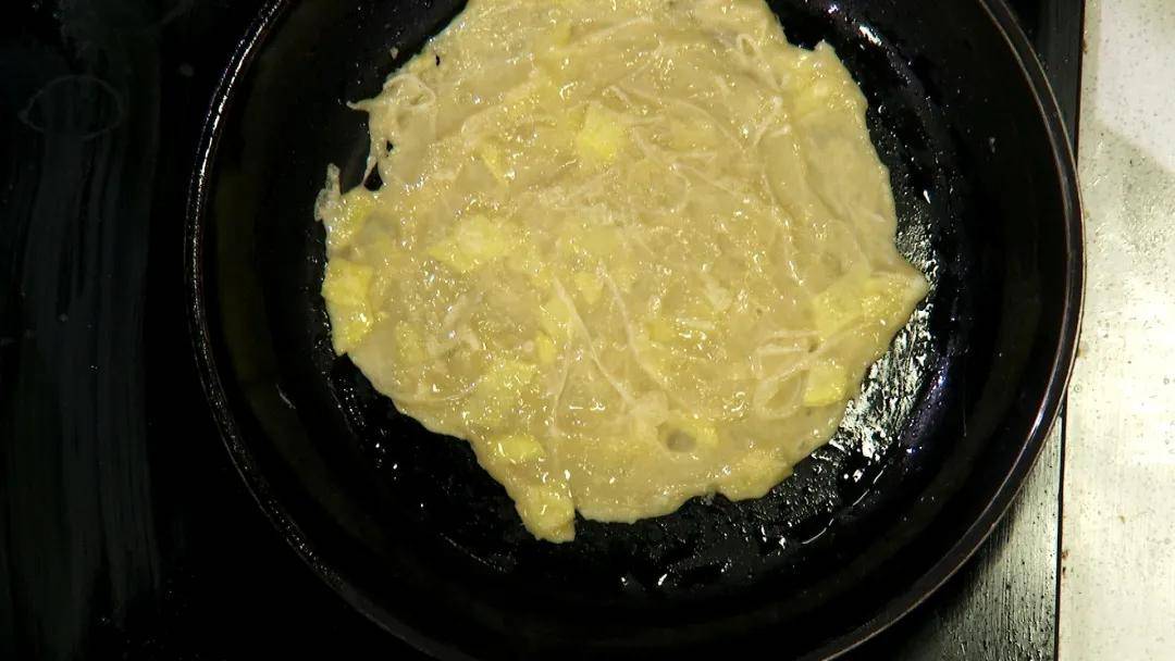 2:面浆中加少许糖,或加入甘草水调味,再将饼浆下锅摊制成饼即可。