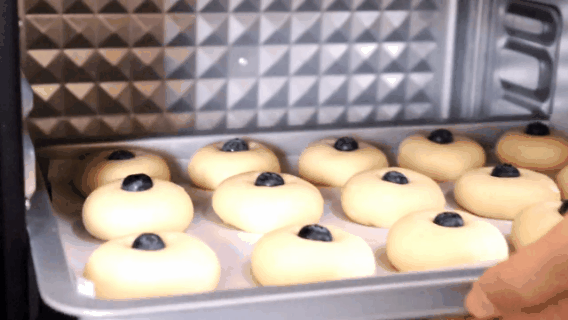 4,摆入烤盘内,中间放入一颗蓝莓。